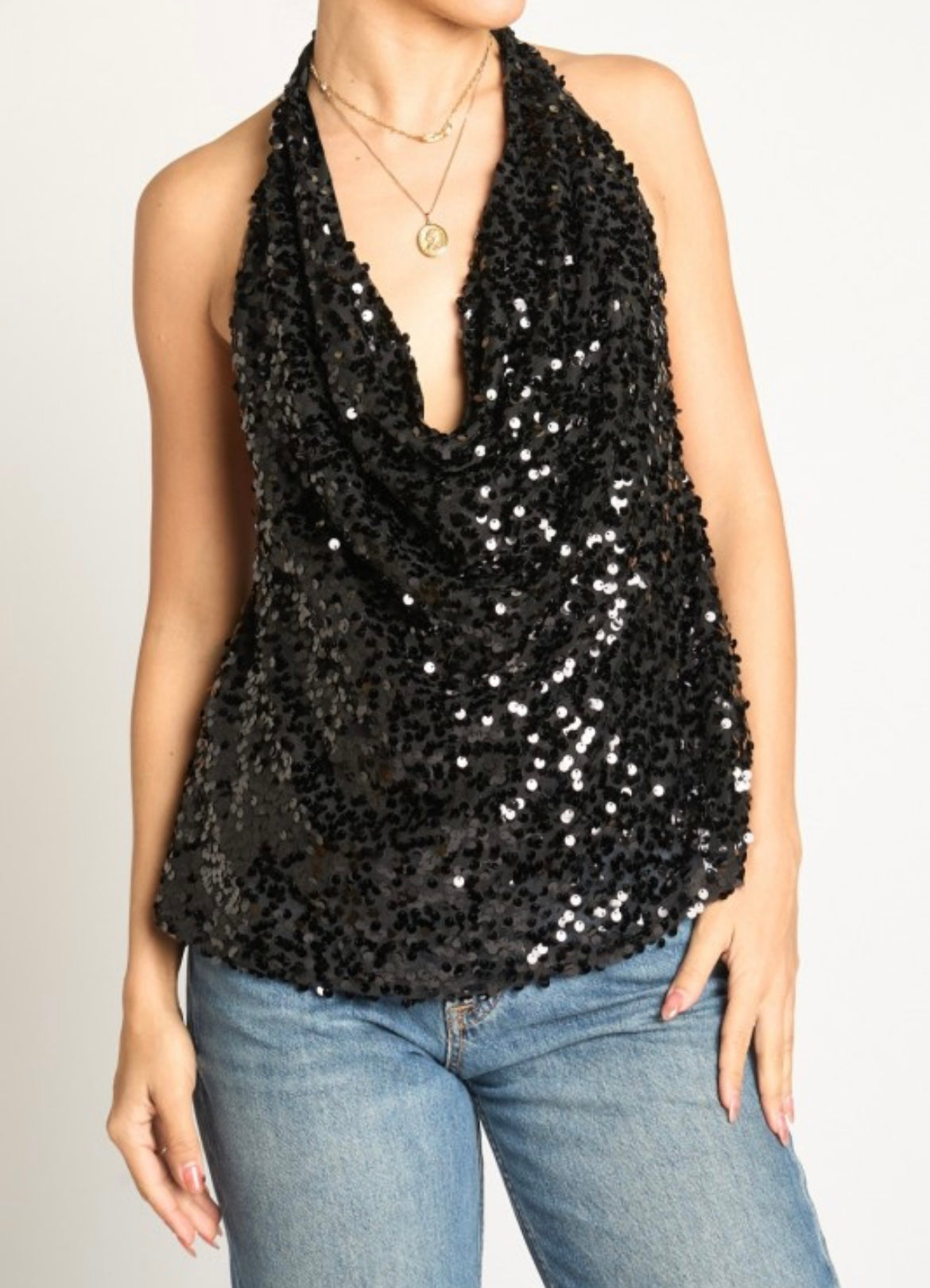 Black Sequin Halter Top